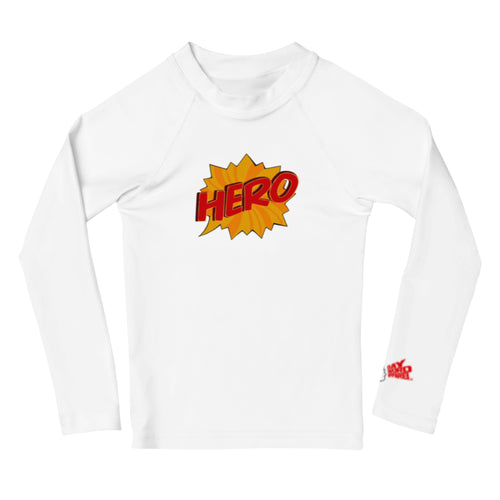 HERO - Kids Rash Guard - White - (Male Super Hero on back)