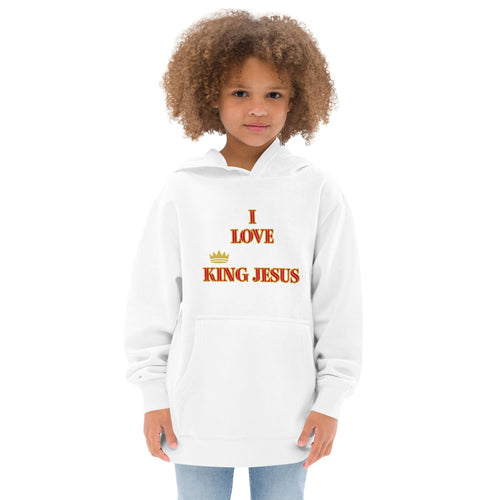 KING JESUS Kids fleece hoodie - White / Red & gold text