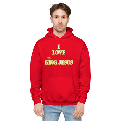 KING JESUS - Unisex fleece hoodie - Red/Gold & White Text